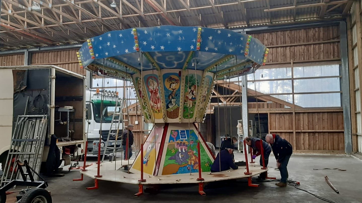 Für die St.-Sebastianus-Schützenbruderschaft Werlte gehört das Kinderkarussell zum Schützenfest wie die Fahne zum Ausmarsch. Daher war die Enttäuschung groß, als 2023 die Absage des Schaustellers für das traditionelle Kinderkarussell eintraf. Ein Schützenfest ohne leuchtende Kinderaugen? Undenkbar. Anstatt den Kopf in den Sand zu stecken, hatten die beiden Schützenbrüder Thomas Grummeln und Clemens Schnieders eine visionäre Idee. Warum nicht ein eigenes Karussell für die Schützenbruderschaft kaufen? Was zunächst wie eine kühne Stammtisch-Idee klang, stieß beim damaligen Brudermeister Hans-Wilhelm Merten sofort auf offene Ohren. Auch das damals amtierende Königspaar Rolf und Petra Janssen zögerten keine Sekunde und sicherte dem Vorhaben volle Unterstützung zu. Die beiden engagierten Schützenbrüder Grummeln und Schnieders machten sich im Internet auf die Suche nach einem geeigneten Karussell. Die Suche gestaltete sich jedoch schwieriger als gedacht. Man wurde fündig in der Region Frankfurt. Am frühen Sonntagmorgen machte sich eine Delegation auf dem Weg. Doch die Ernüchterung folgte vor Ort. Das besichtigte Modell entsprach nicht den Vorstellungen. Man fuhr sehr enttäuscht zurück nach Werlte. Das Projekt drohte zu scheitern. Doch Brudermeister Merten und das Königspaar Janssen hielten am Plan fest und motivierten die beiden Schützenbrüder zur weiteren Suche. Der Einsatz wurde belohnt. In der Pfalz wurden sie fündig und entdeckten schließlich ein Schmuckstück aus den 1970er Jahren. Nach gründlicher Begutachtung stand fest. Das ist es! Was dann folgte, ist ein Paradebeispiel für den Zusammenhalt in Werlte.